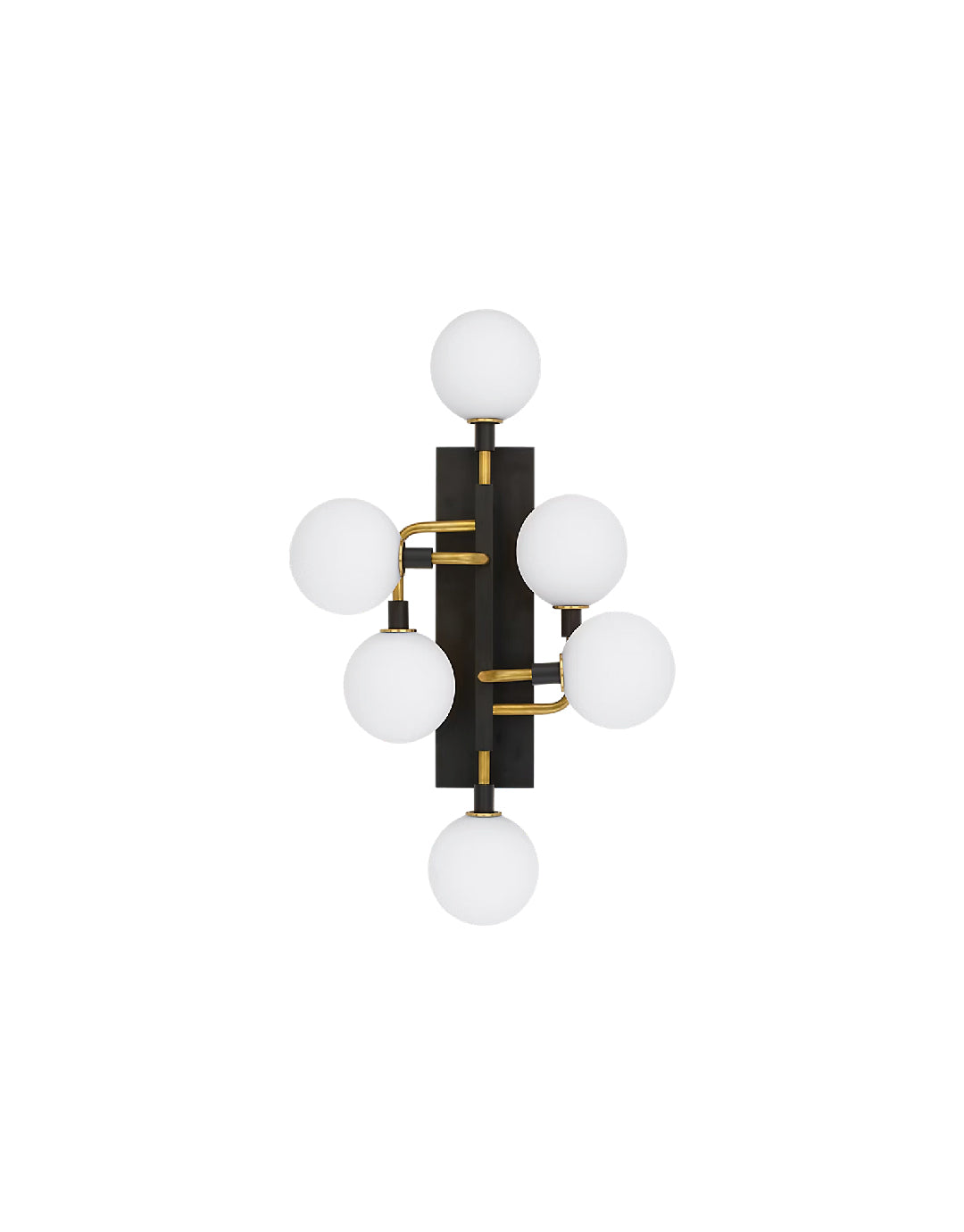 El aplique Viaggio de Sean Lavin presenta un artístico conjunto de esferas de cristal que parecen flotar sobre la pared, creando una sensación de movimiento celestial. Su elegante cuerpo negro contrasta con los brazos de latón macizo con globos de cristal blanco o con los brazos de níquel pulido con globos de cristal ahumado espejado, creando un acabado intenso e impactante. Ambos acabados ofrecen una suave iluminación sin deslumbramiento sobre las superficies circundantes.