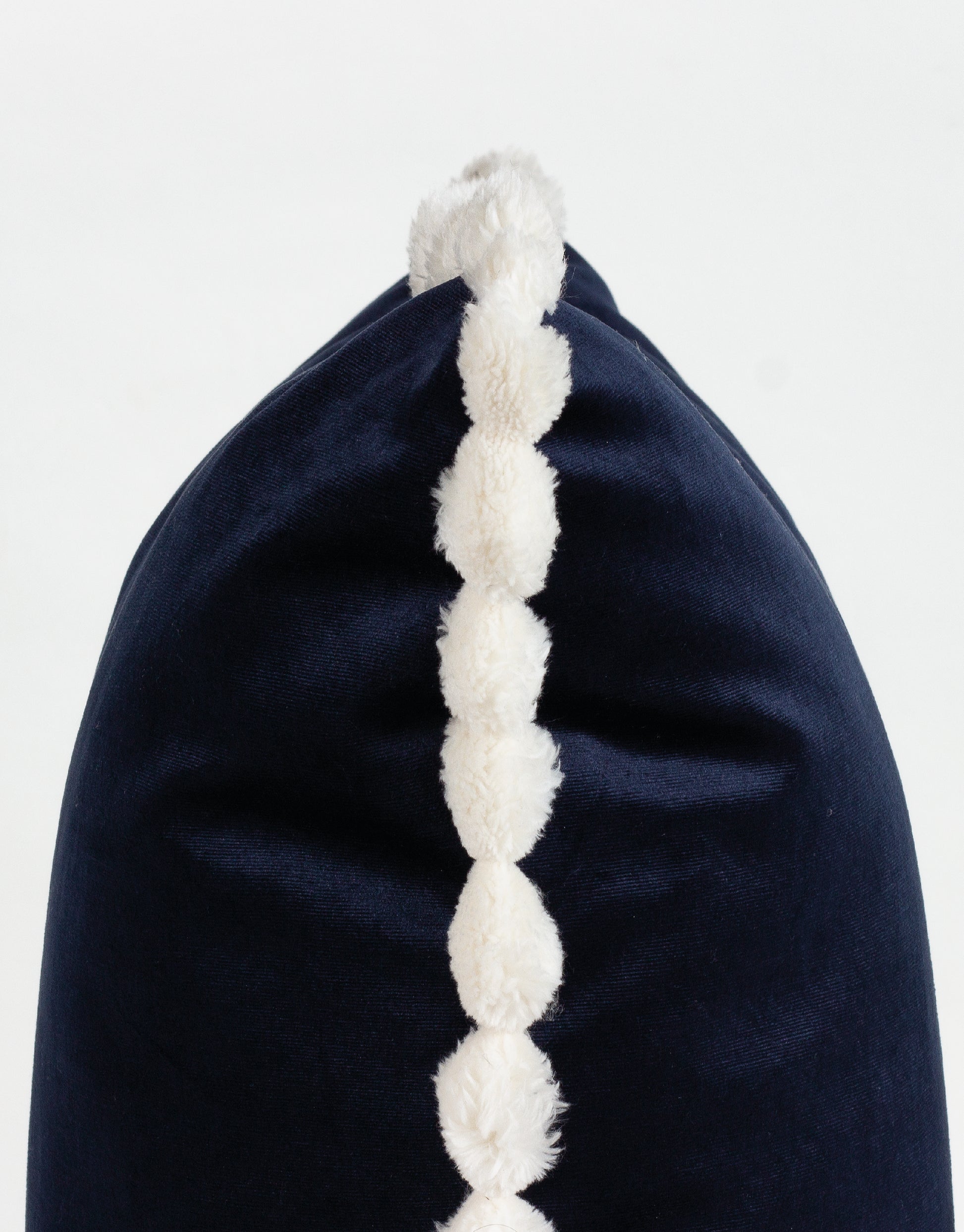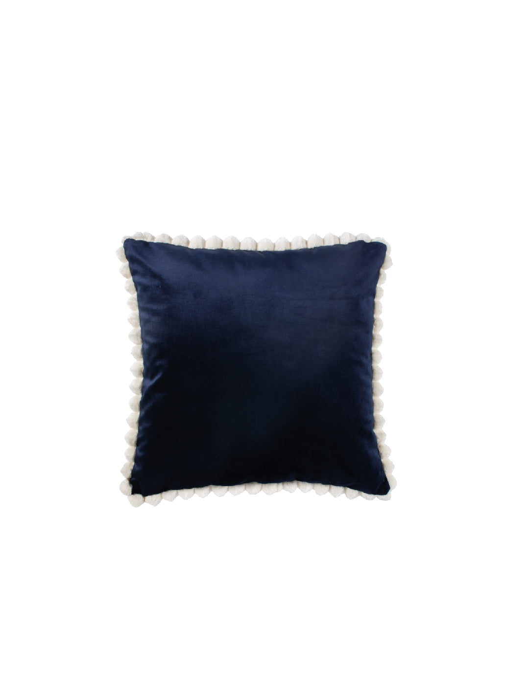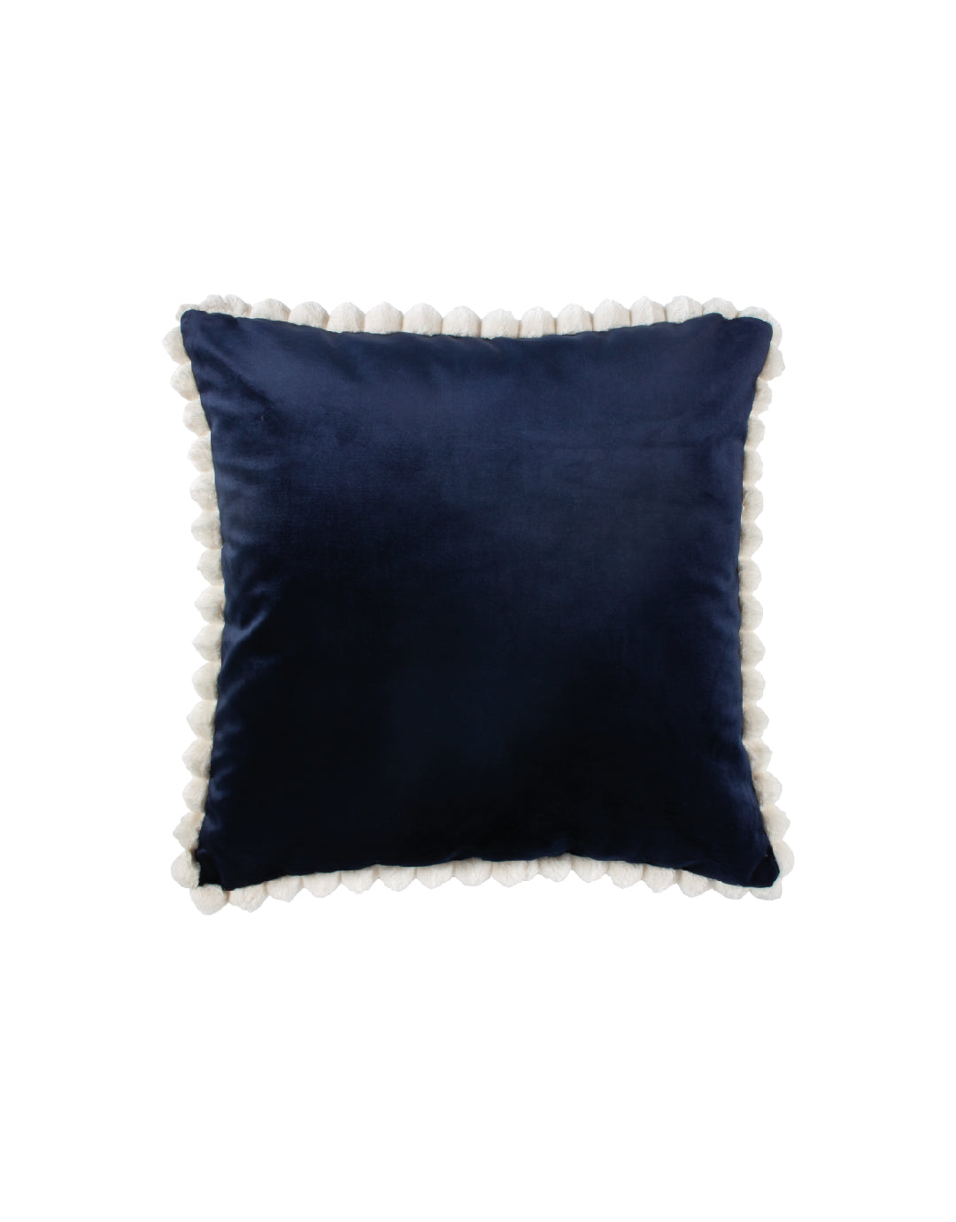 Dale un aire sofisticado y acogedor a tu espacio con este cojín en un elegante tono azul marino. Su acabado aterciopelado y el detalle del ribete negro con diseño ondulado aportan un toque de distinción y contraste. Ideal para complementar sofás, sillones o camas con un estilo cálido y contemporáneo