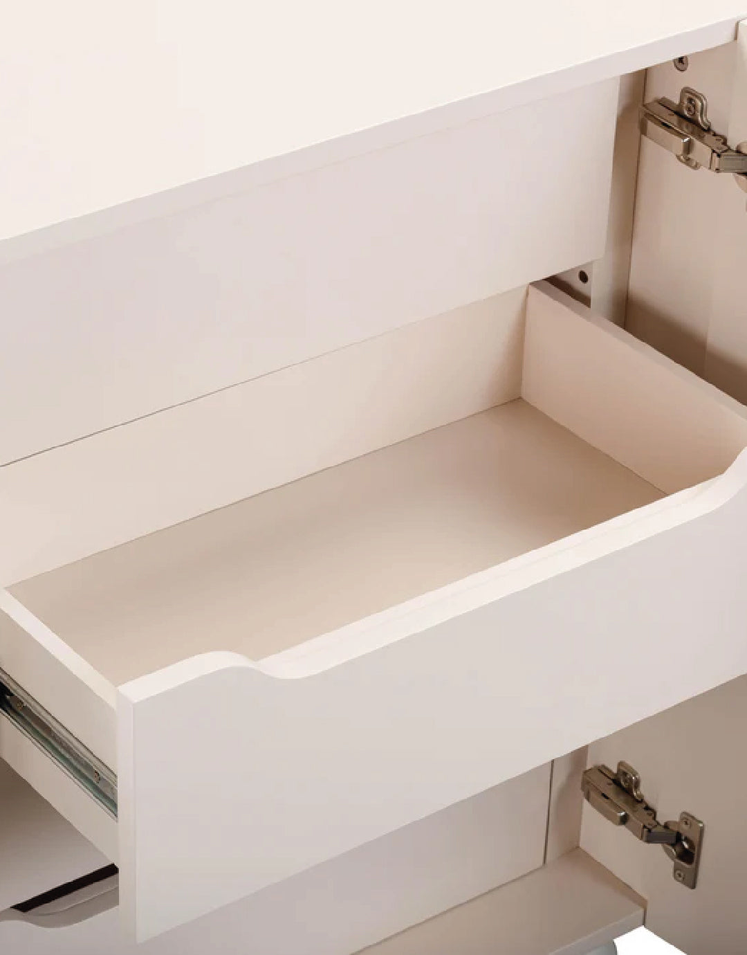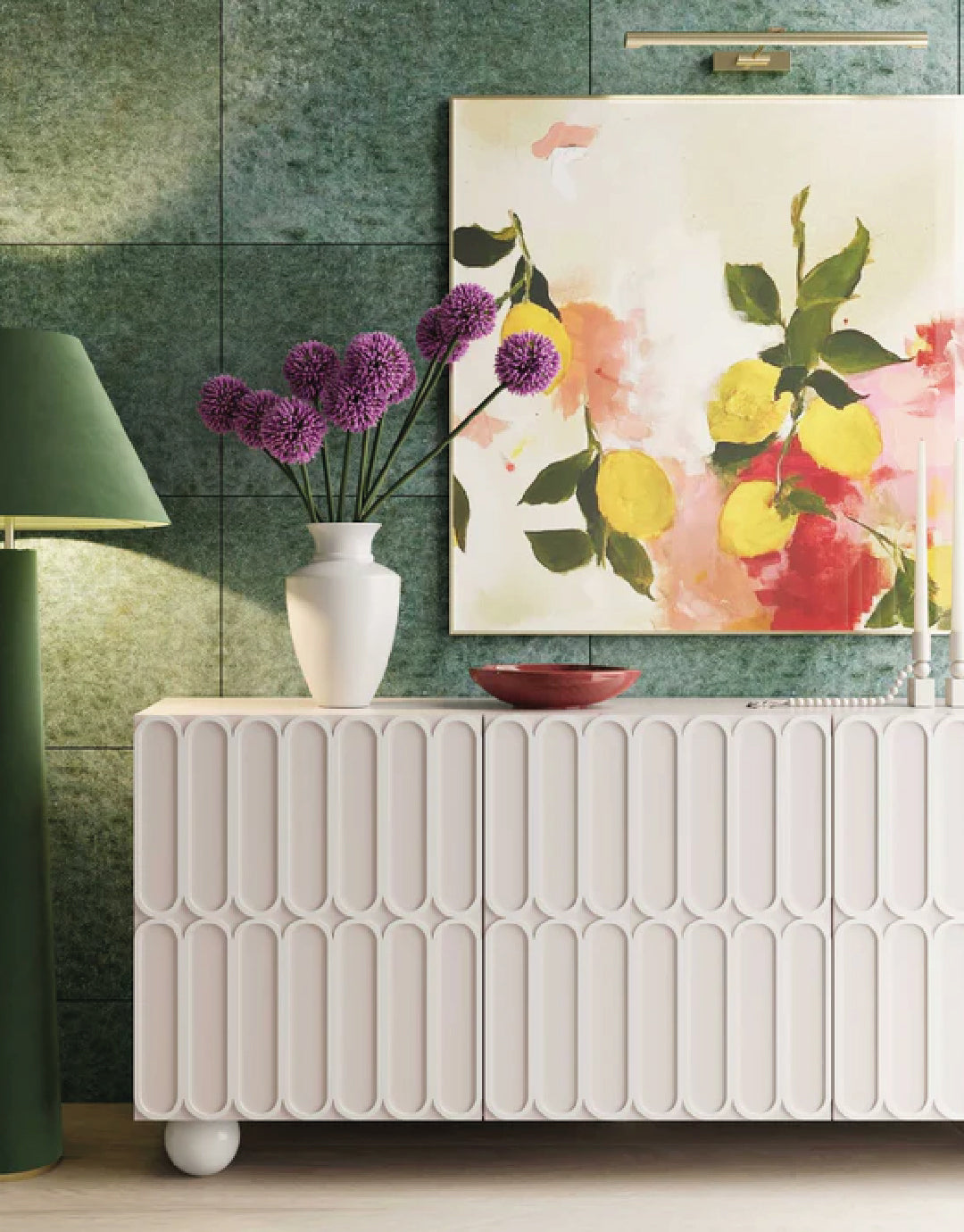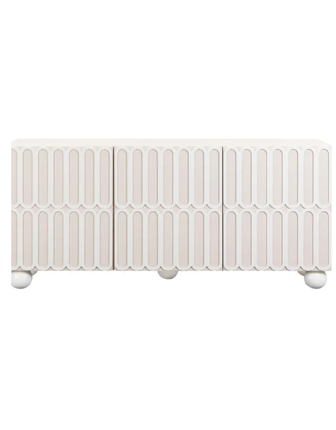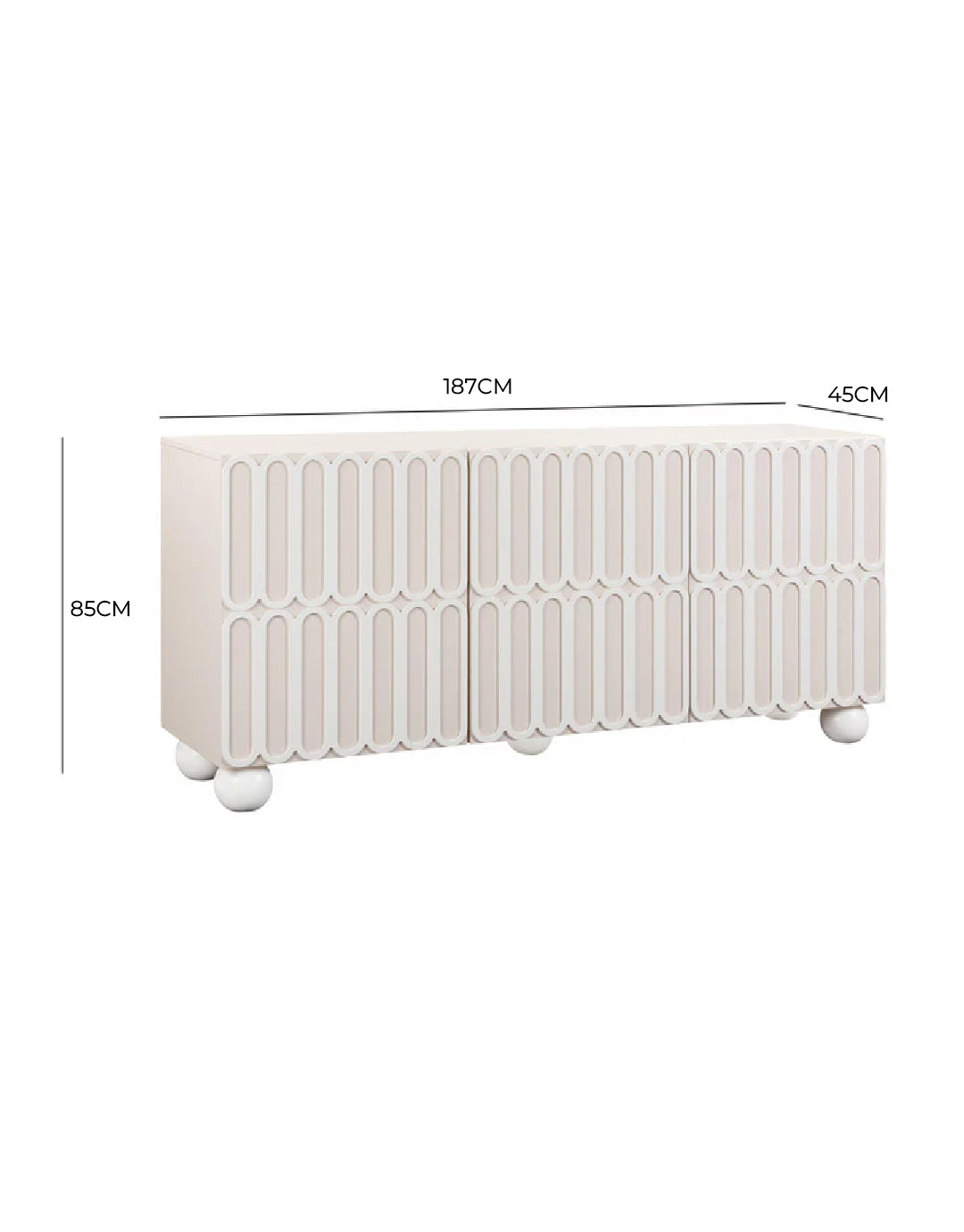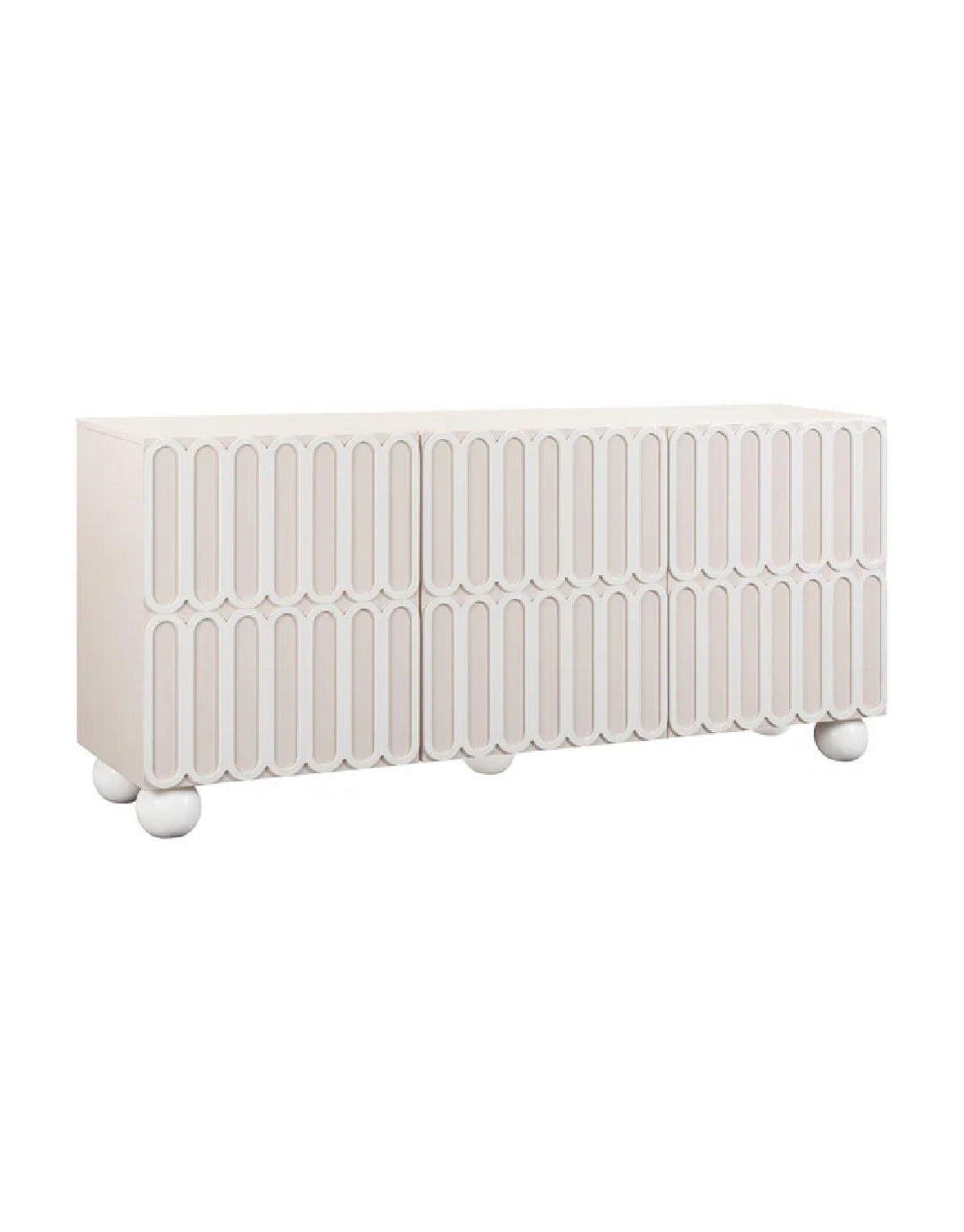 Acapara todas las miradas con el aparador Tori Motif Taupe, donde una fachada dinámica cobra protagonismo sin eclipsar su practicidad. Tras bambalinas, cuatro discretos cajones ofrecen un conjunto de almacenamiento ideal para el coleccionista más exigente, todo ello sobre patas esféricas de madera maciza que le aportan un toque escultural, digno de Hollywood. Este aparador deslumbra con un brillo medio que facilita la limpieza, junto con bisagras de cierre suave que rinden homenaje a la calidad y estantes ajustables que se adaptan a cualquier función con un toque de delicadeza.