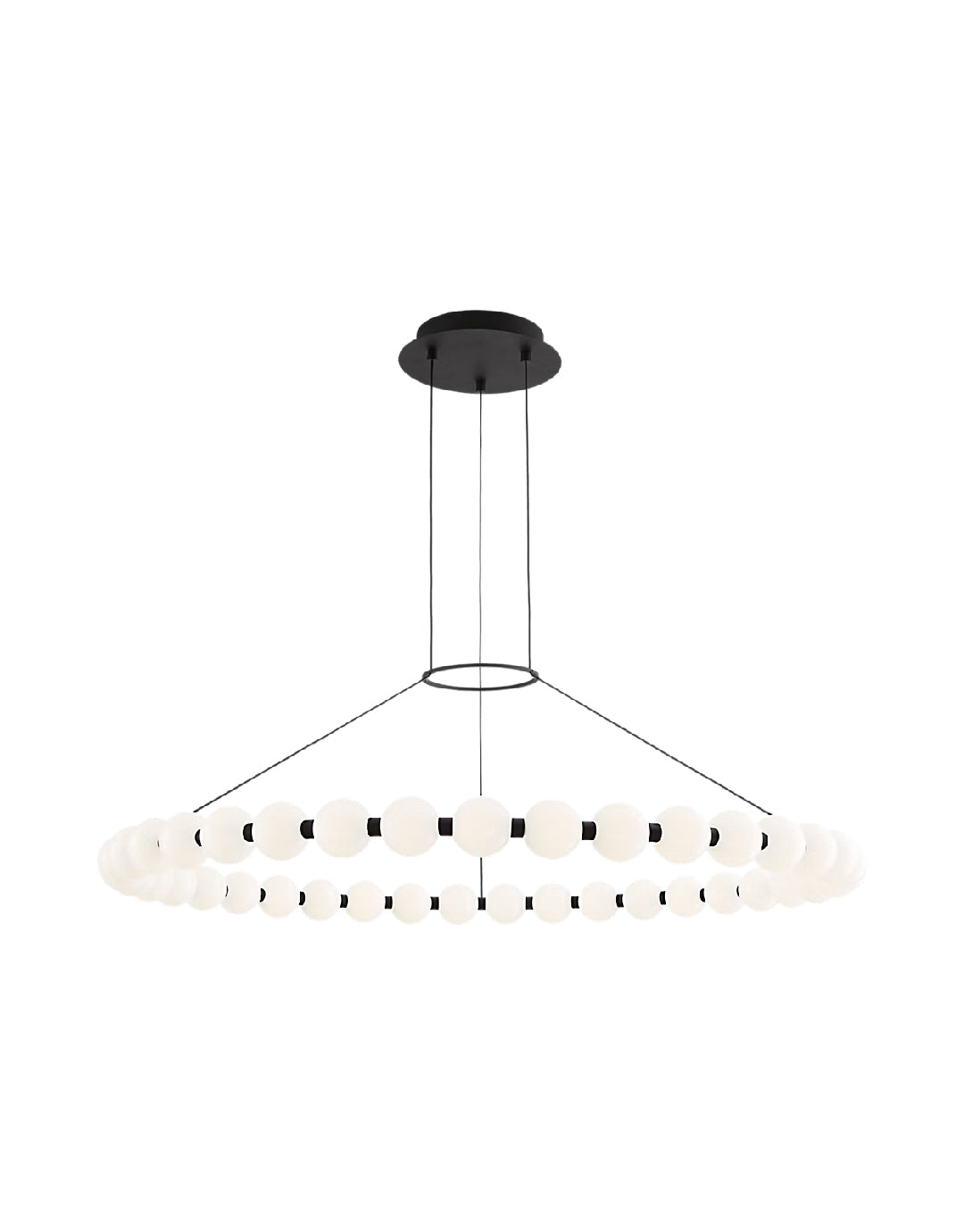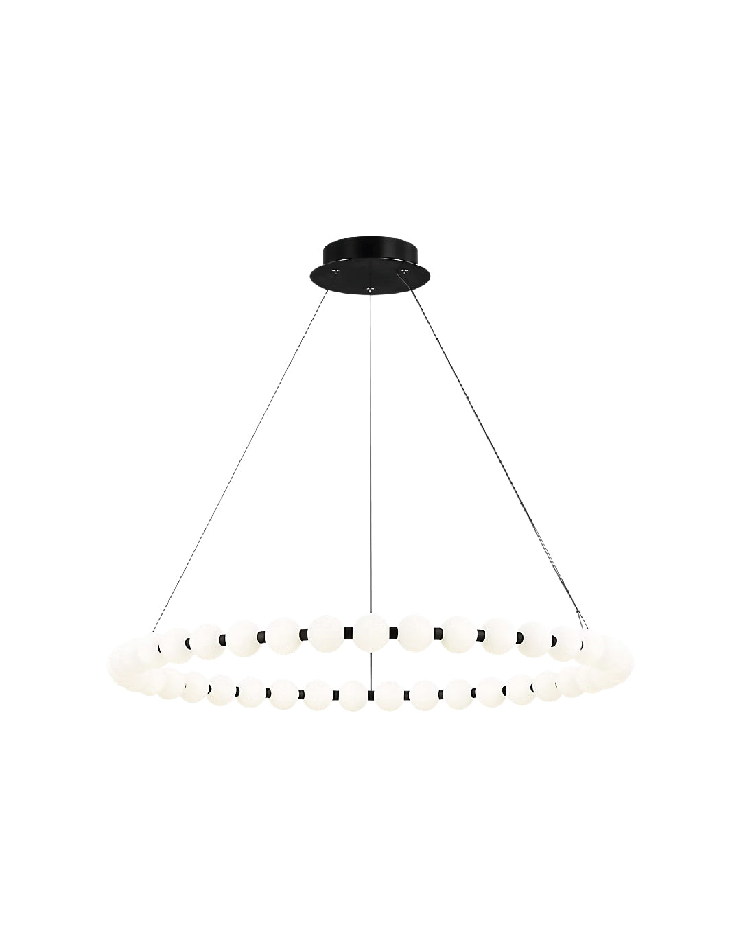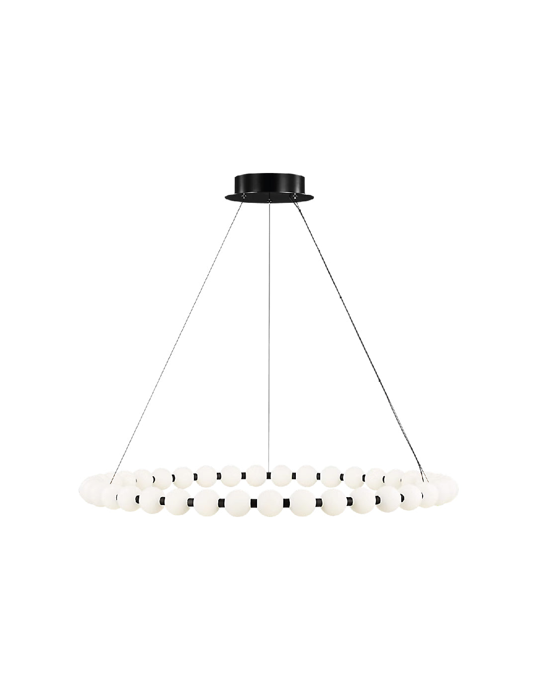 La lámpara de araña Orbet 42 de Sean Lavin es una versión moderna del clásico diseño de anillo. Sus esferas de vidrio opalino proporcionan una estética suave y difusa a los LED integrados y están acentuadas con separadores metálicos que aportan un toque de contraste. Esta lámpara es perfecta para comedores, vestíbulos, hostelería y mucho más.