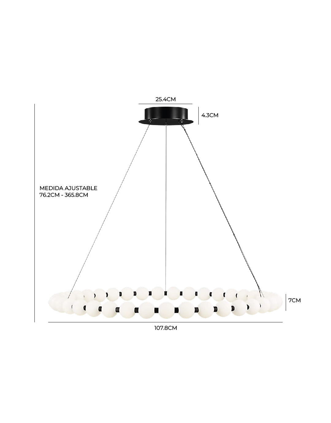 Dimensiones: Diámetro 107.8cm - Altura ajustable 76.2cm/365.8cm