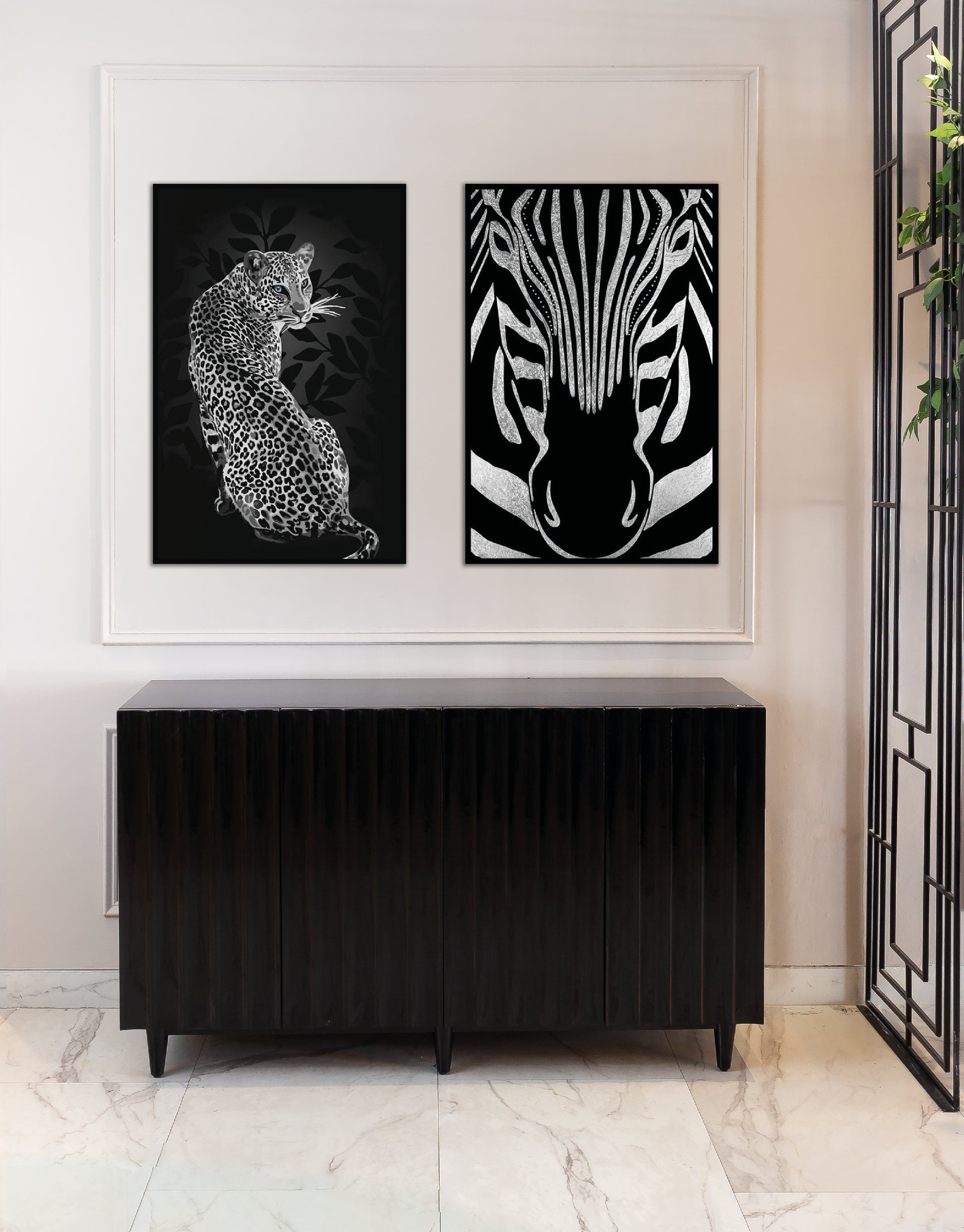 Aporta sofisticación y funcionalidad a tus espacios con esta bufetera de diseño moderno. Su estructura texturizada en color negro profundo combina líneas verticales con un acabado brillante que agrega carácter y estilo a cualquier ambiente.