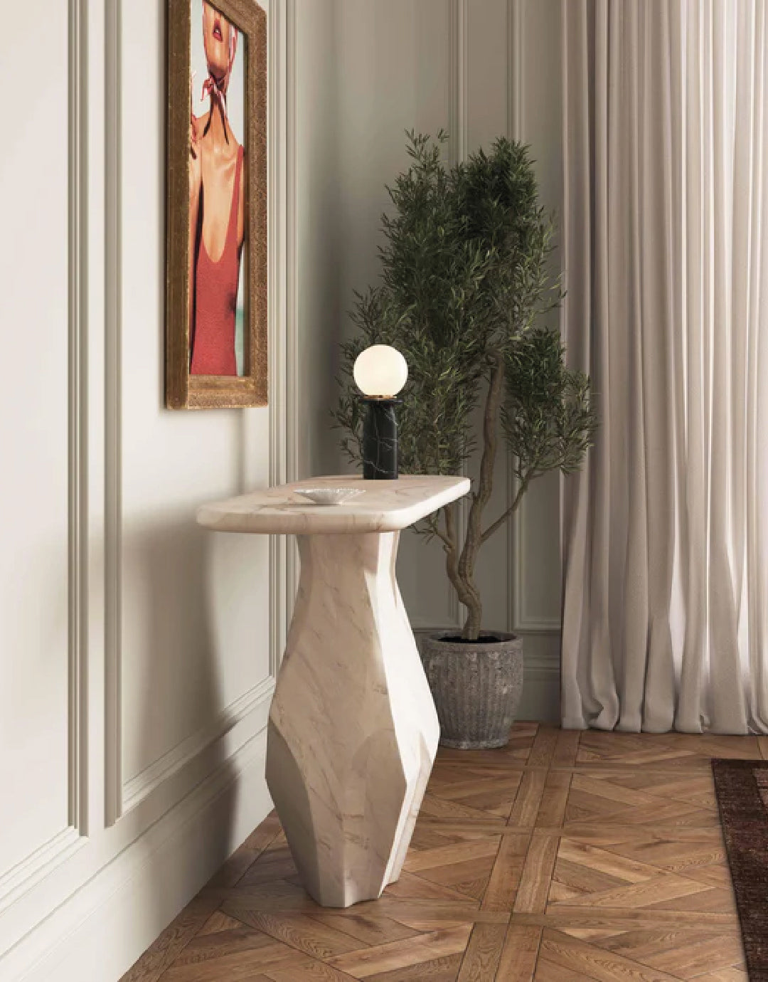 La credenza Esme de imitación de mármol presenta siluetas llamativas que imitan el aspecto del mármol cincelado, aportando un diseño audaz a cualquier espacio. Con una mesa auxiliar, una consola y una mesa de comedor redonda de 122 cm para elegir, estas piezas versátiles son perfectas tanto para interiores como para exteriores.