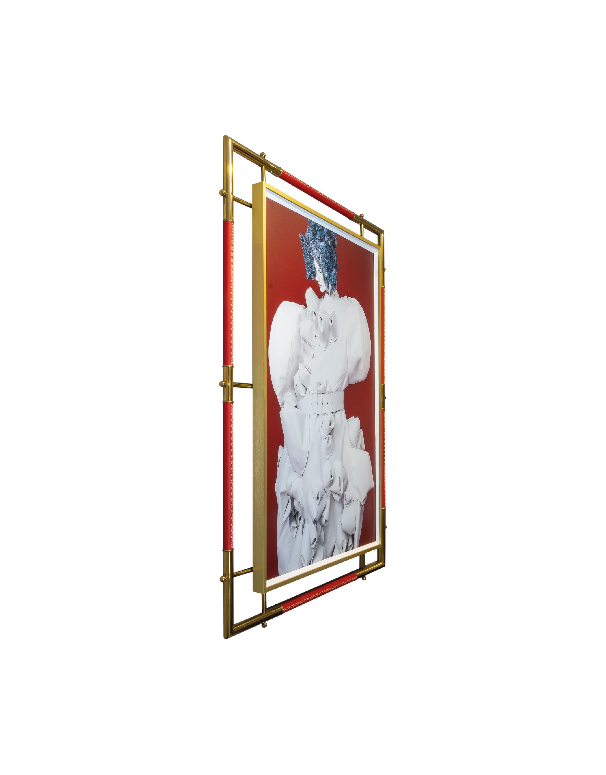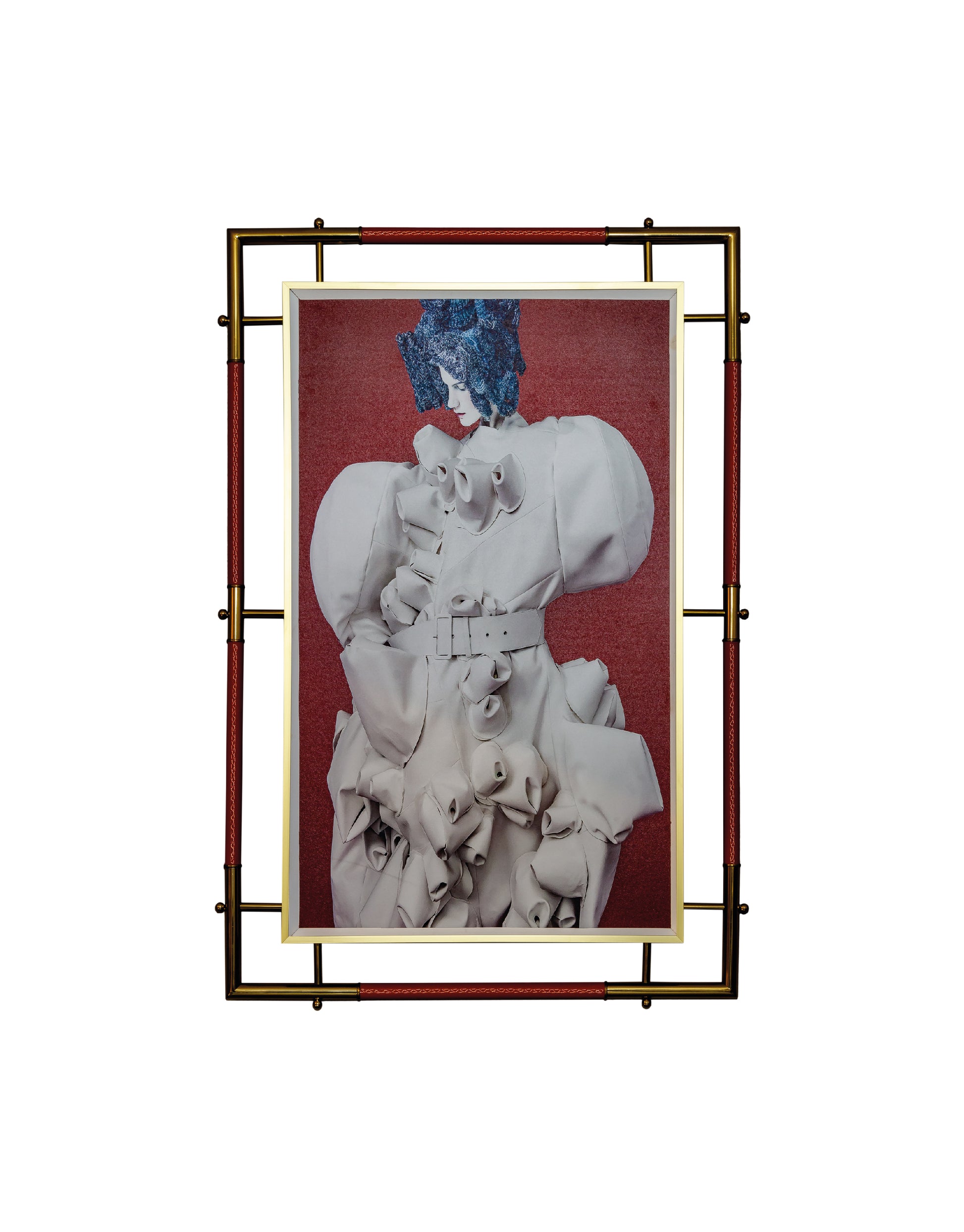 Materiales: Marco de metal con vinipiel y canvas de metal.