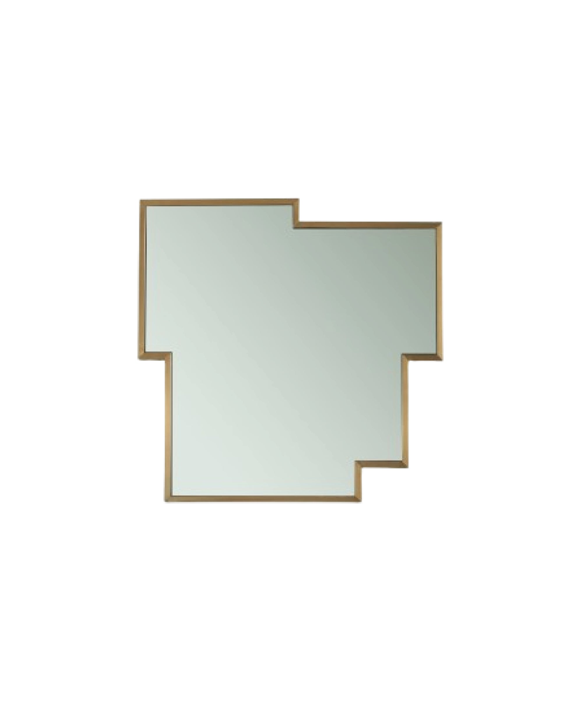 Este espejo presenta un diseño moderno y vanguardista con un marco metálico en acabado dorado. Su forma asimétrica y geométrica lo convierte en un elemento decorativo ideal para espacios contemporáneos, aportando estilo y amplitud visual.