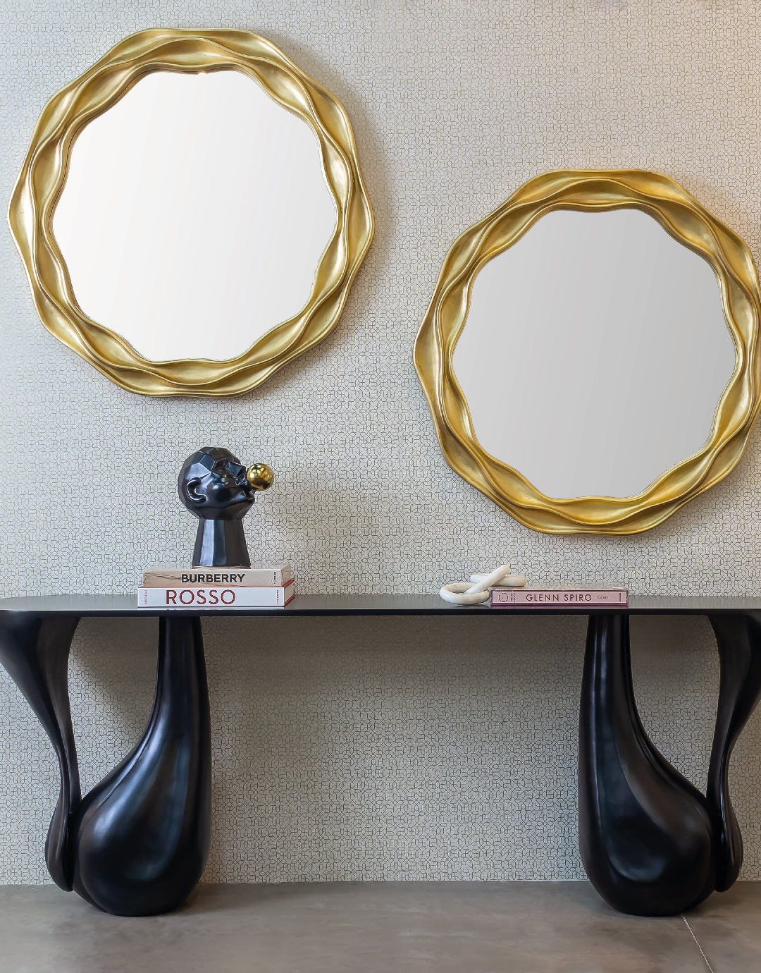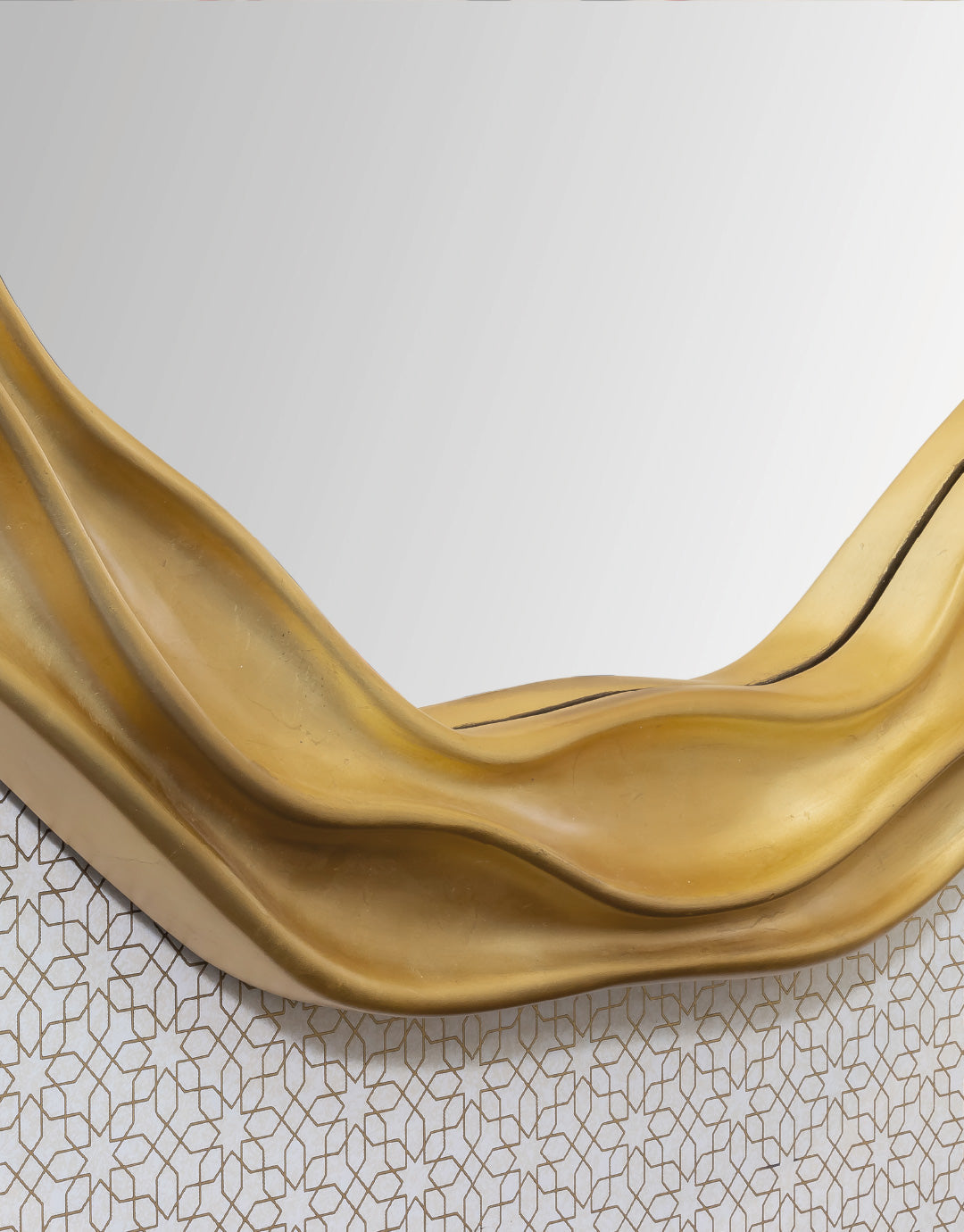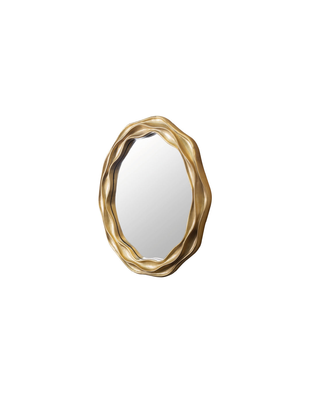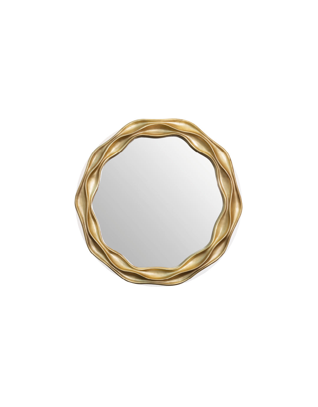 Este es otro espejo decorativo con un diseño moderno y sofisticado. Su marco dorado con un acabado ondulado le da un toque elegante y contemporáneo. Es ideal para agregar estilo y un toque de lujo a cualquier espacio