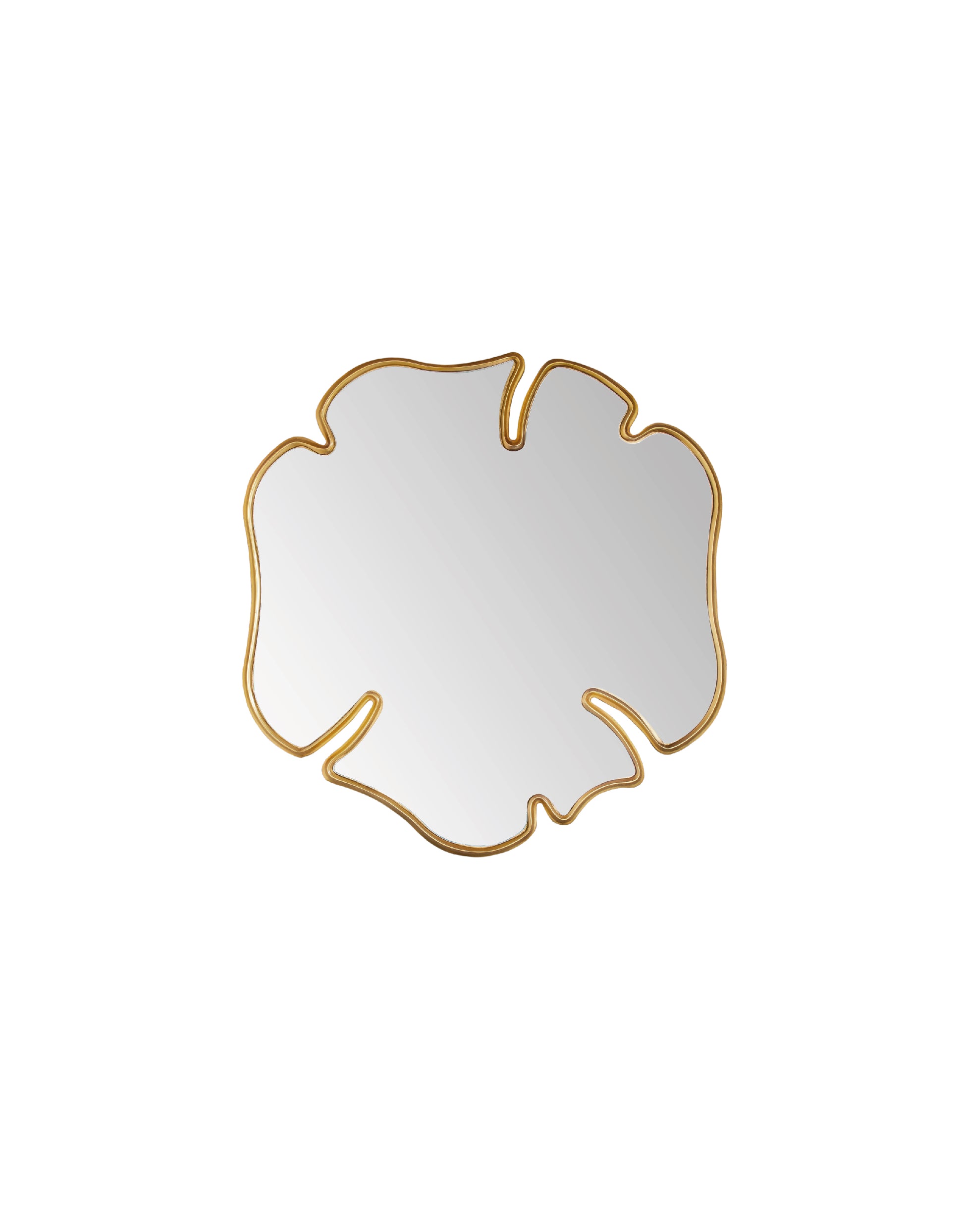 Inspirado en la fluidez orgánica de la naturaleza, el espejo “Cairo” es una pieza de arte funcional. Su forma irregular evoca la silueta de una flor abstracta o una pincelada libre, enmarcada con un delicado borde dorado que le da un aire sofisticado y moderno. Ideal para espacios que buscan destacar con originalidad sin perder elegancia.