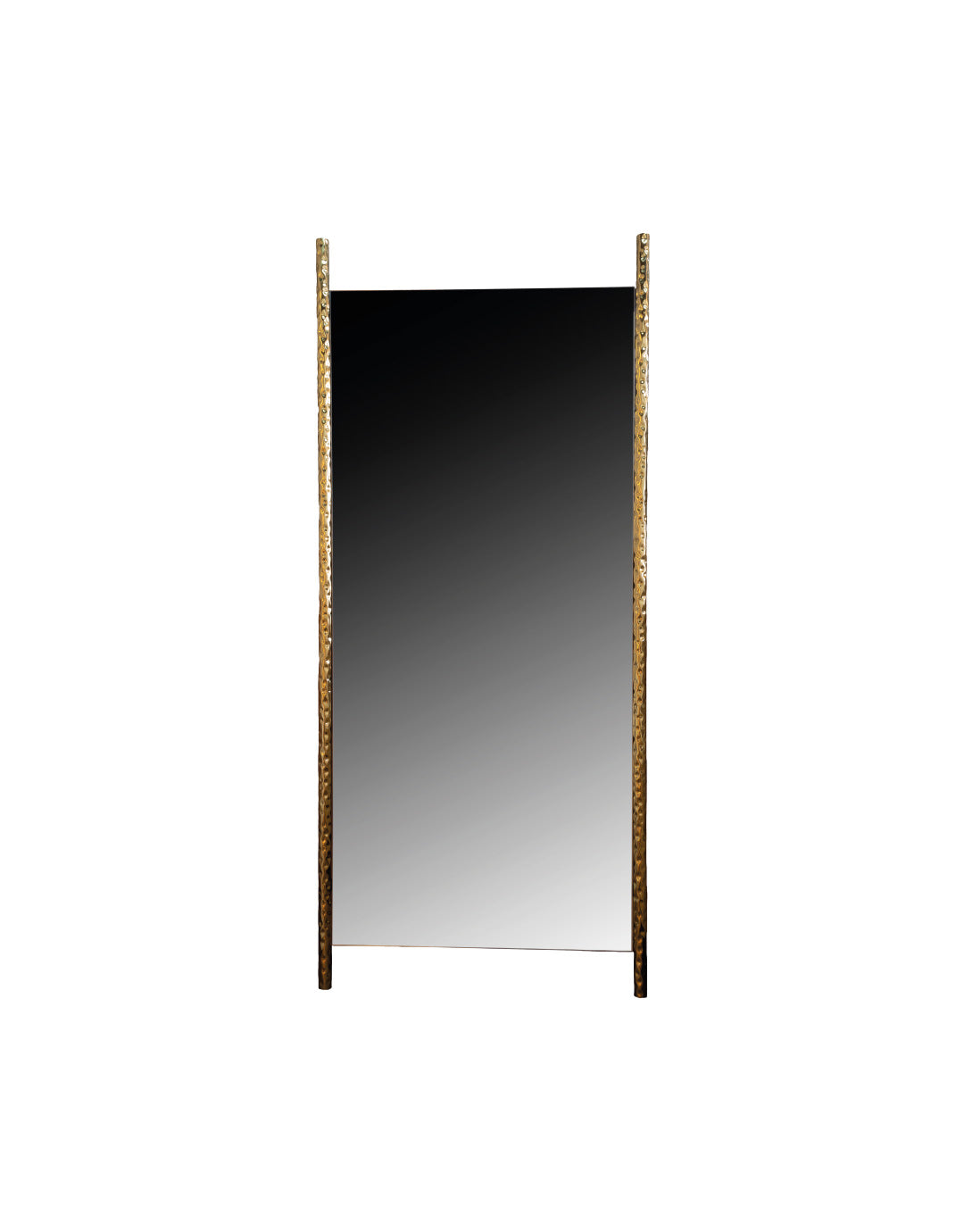 Este espejo de pie destaca por su diseño elegante y contemporáneo. Su estructura vertical con un marco de acabado dorado texturizado añade un toque de sofisticación y lujo a cualquier espacio. La forma asimétrica del espejo aporta modernidad y dinamismo, convirtiéndolo en un elemento decorativo ideal para interiores vanguardistas. Perfecto para vestidores, recibidores o habitaciones que buscan un detalle refinado y funcional.