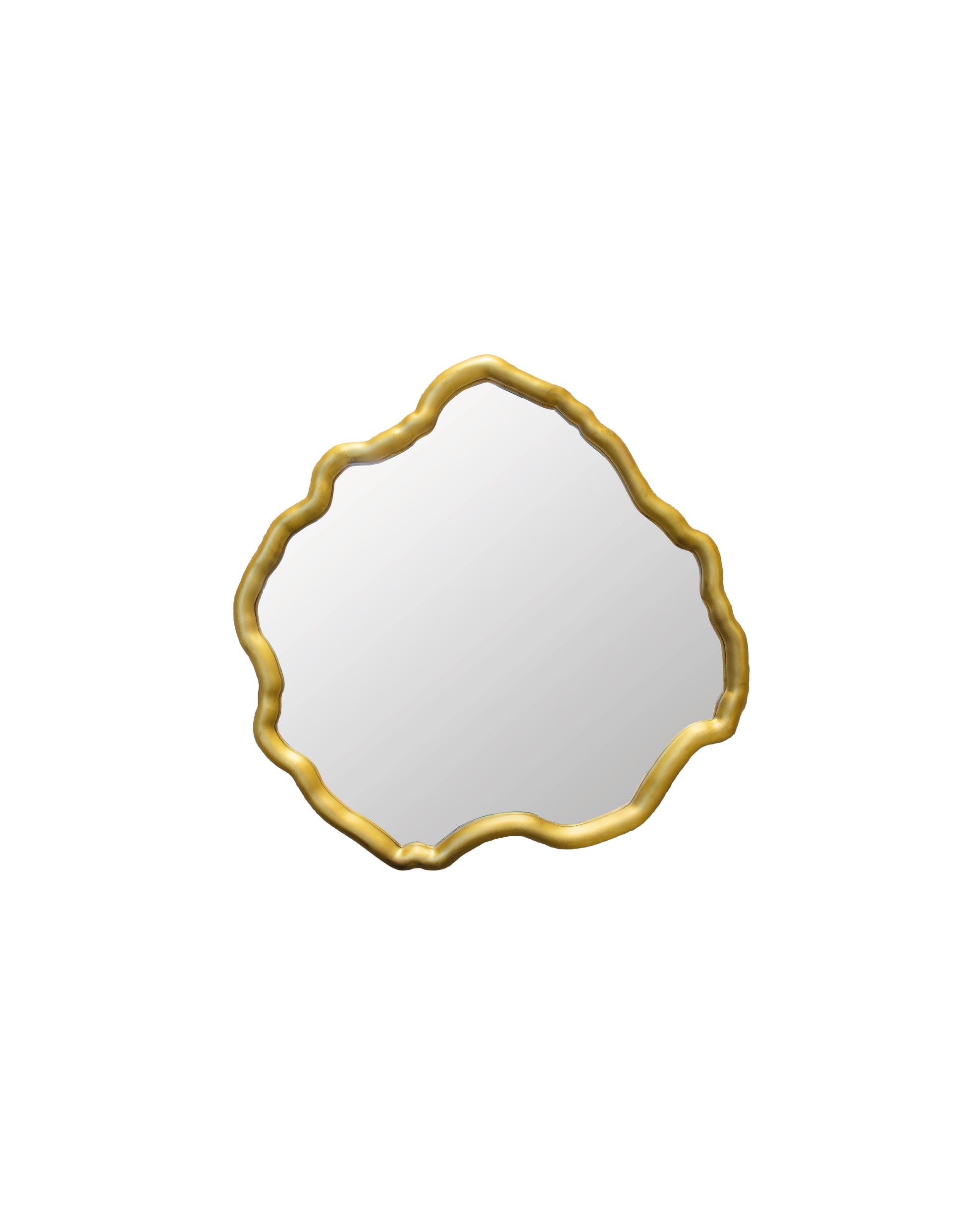 El espejo “Ibiza” es una joya decorativa que fusiona el estilo orgánico con la elegancia dorada. Su contorno ondulado simula la silueta libre de una roca o una nube, dando una sensación de movimiento natural. El marco dorado con acabado mate aporta un toque cálido y lujoso, ideal para espacios con alma artística.