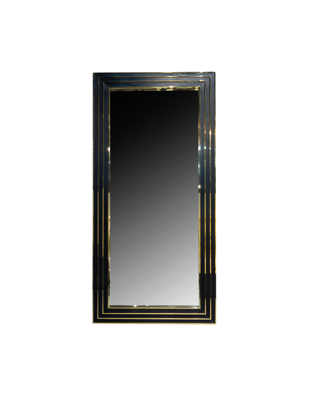 Este es un espejo de gran tamaño con un elegante marco negro y detalles dorados. Su diseño sofisticado lo hace ideal para espacios clásicos y contemporáneos. Perfecto para darle amplitud y elegancia a cualquier habitación.