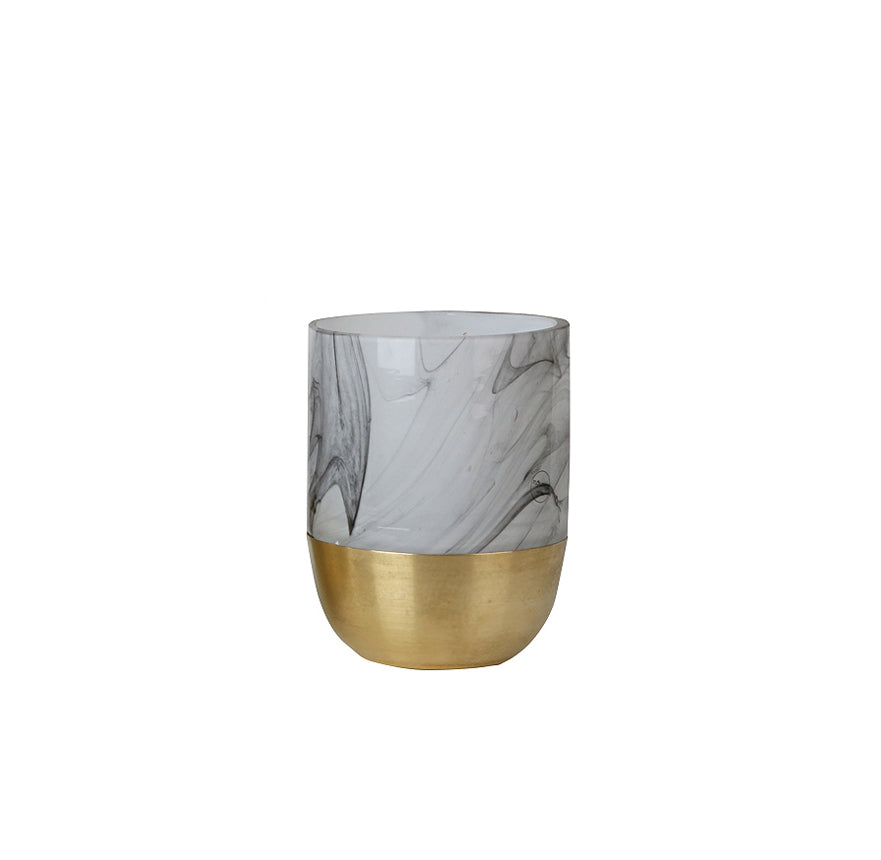 JARRON DE CRISTAL CON DETALLE DORADO EN LA BASE