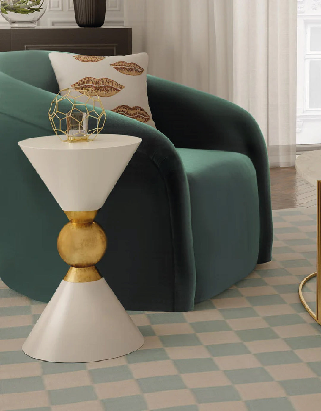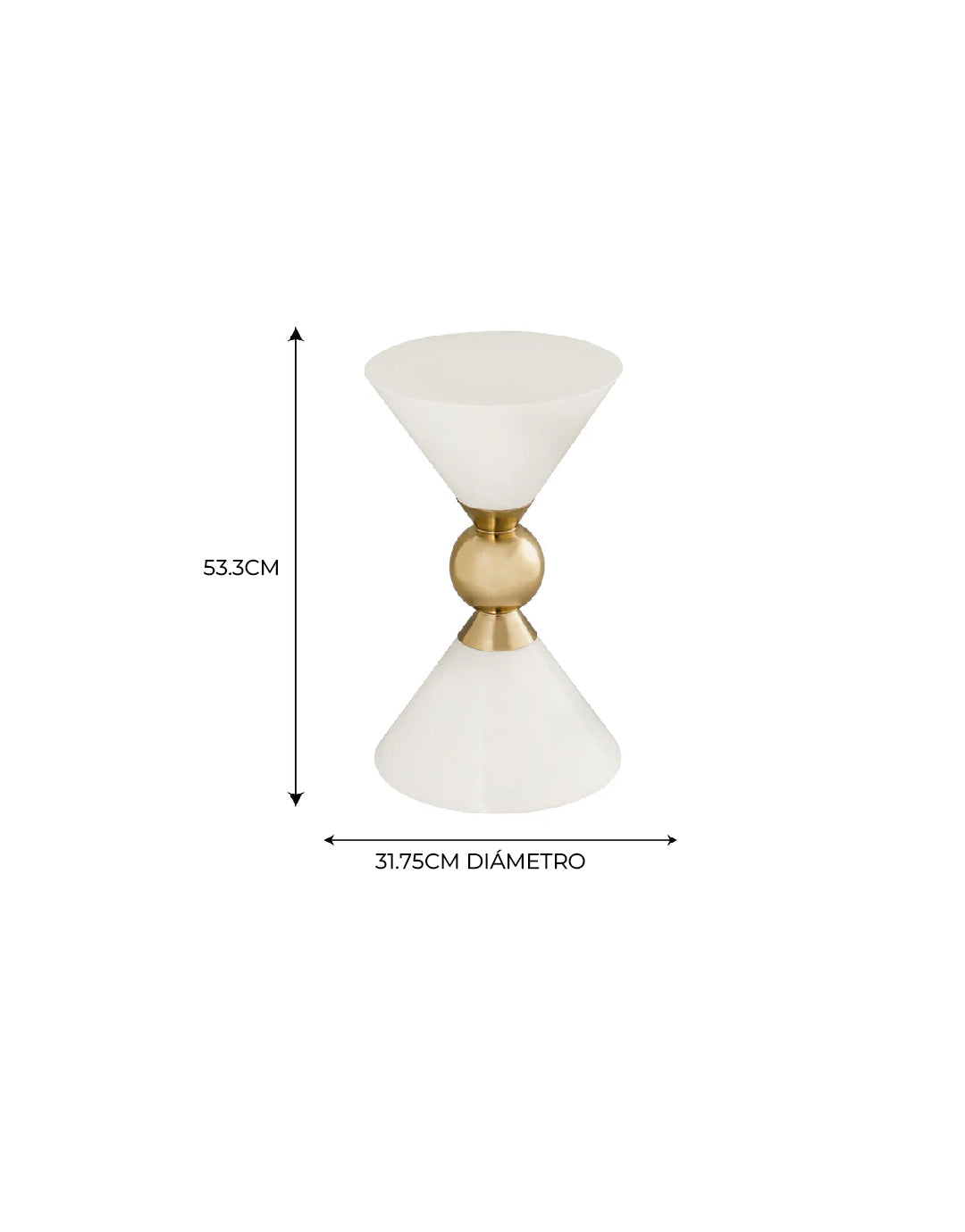 Con un diseño de reloj de arena y un acabado dorado que contrasta maravillosamente con sus dos opciones de color disponibles, la mesa auxiliar Balhi te permitirá añadir fácilmente un toque de estilo a tu espacio.