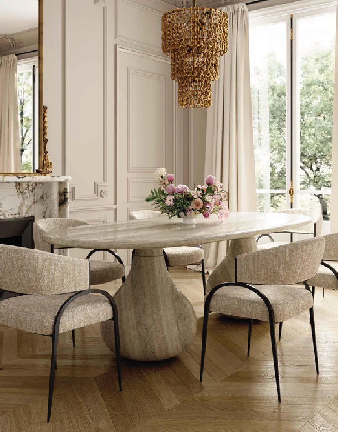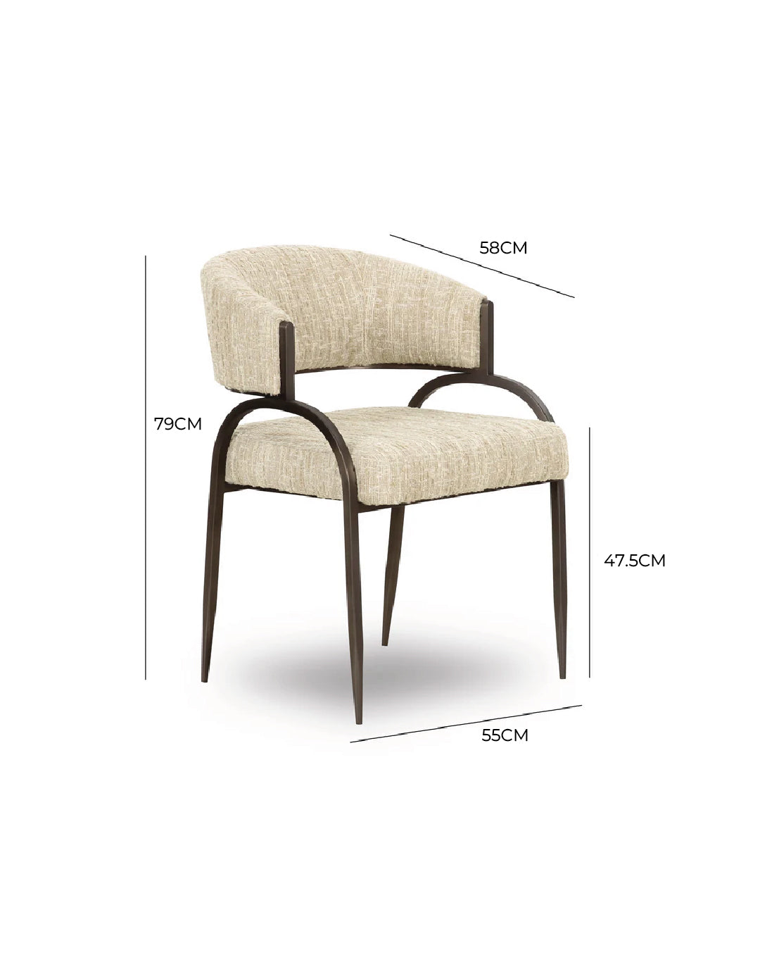 Transforma tu comedor con la impresionante silla de comedor Tatum, disponible en bouclé texturizado color topo y en piel vegana color crema o tostado. Con una estructura metálica con acabado en hierro bronce antiguo, esta silla de inspiración art déco combina un estilo artístico con una funcionalidad moderna, ofreciendo una excelente comodidad y un aspecto elegante que complementa cualquier comedor moderno. La tela altamente texturizada y repelente a líquidos, junto con la piel vegana fácil de limpiar, la hacen tan práctica como elegante.