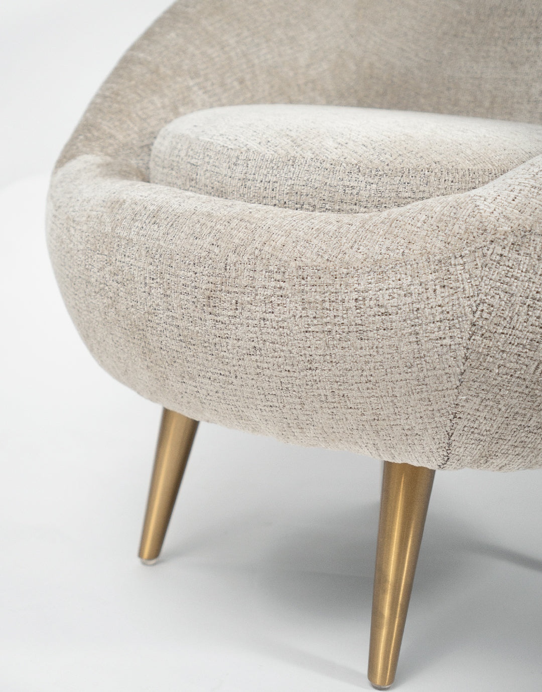 El Sillón Eva destaca por su diseño envolvente y su forma orgánica que invita al descanso. Su estructura de líneas curvas y patas cónicas refleja una estética retro con un aire contemporáneo. Ideal para salones o rincones de lectura, combina confort, estilo y elegancia en una sola pieza.