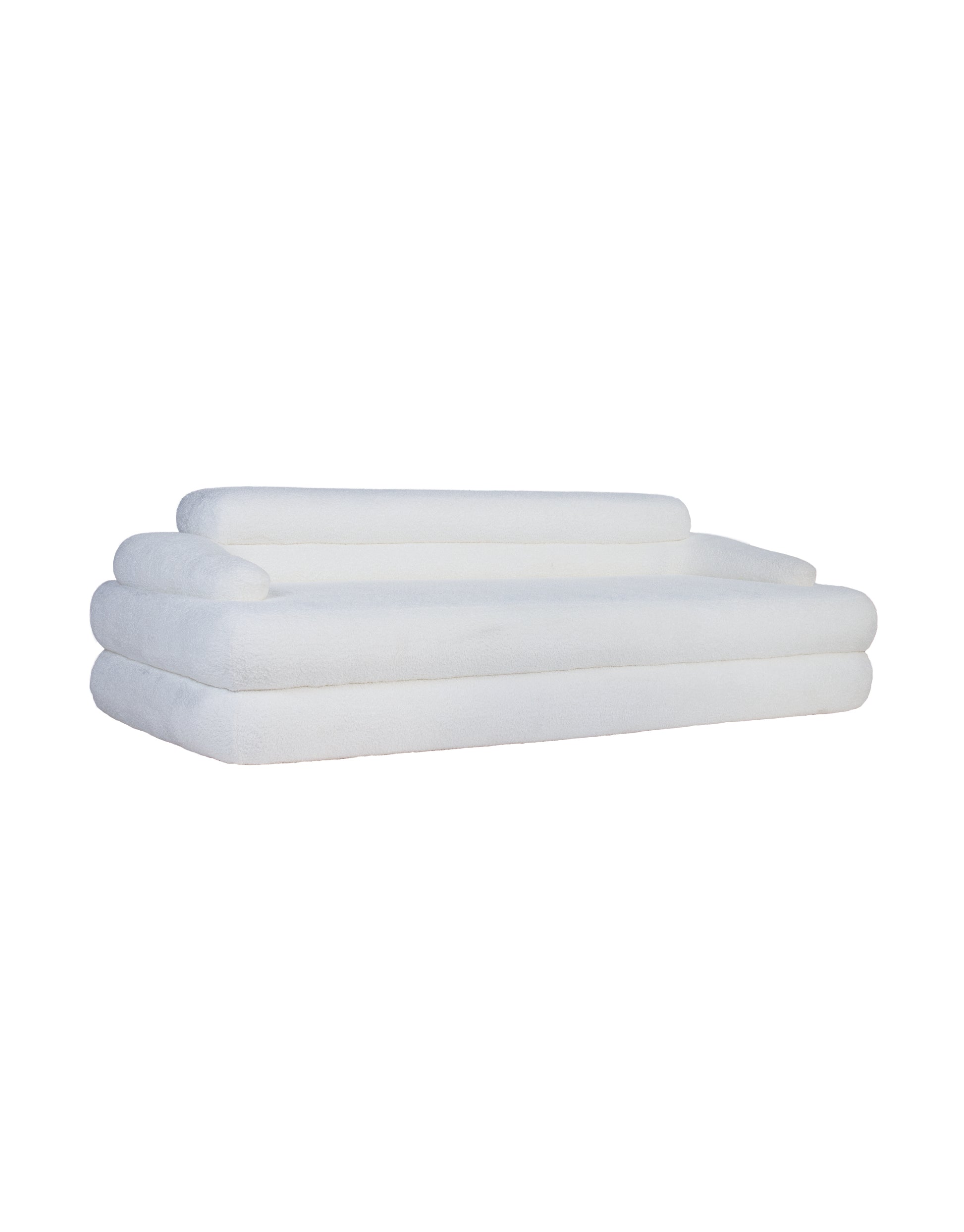 Este sofá de diseño contemporáneo destaca por su estética minimalista y su tapizado en tela bouclé, que aporta una textura suave y acogedora. Su estructura modular y su comodidad excepcional lo convierten en una pieza ideal para espacios modernos y sofisticados.