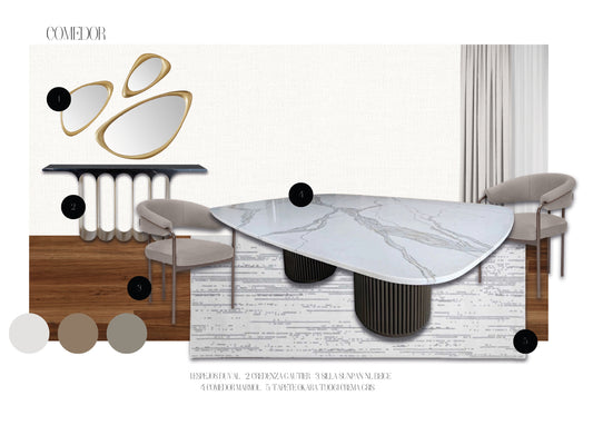 Los moodboards de QuartoGaleria son cuidadosamente curados para transmitir la esencia visual y emocional de cada proyecto. Cada composición combina materiales, texturas, paletas de colores y referencias estéticas que inspiran y guía el desarrollo del diseño.