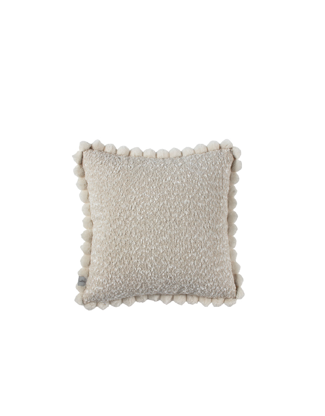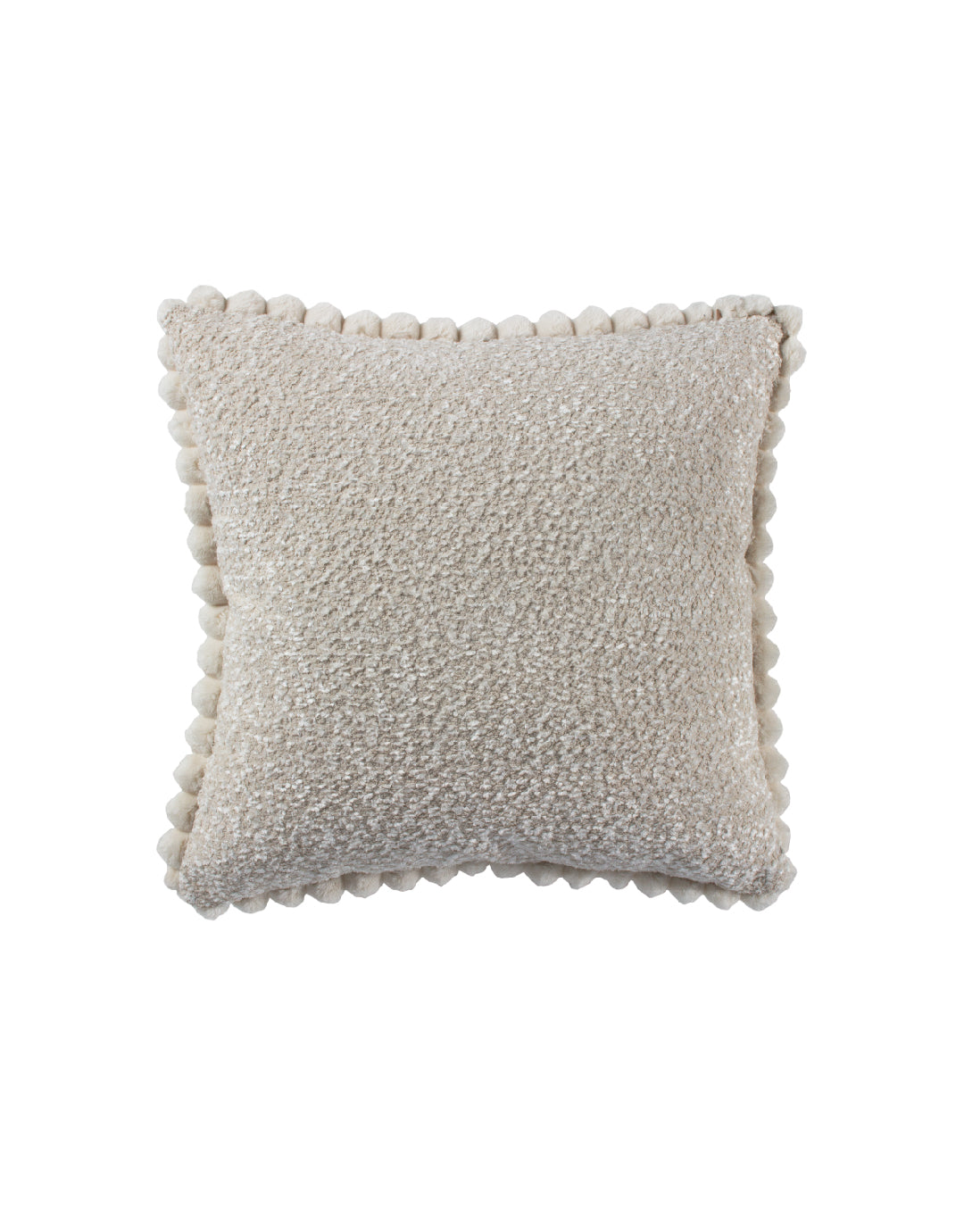 Añade suavidad y calidez a tu espacio con este elegante cojín en tejido bouclé beige. Su textura acogedora y el delicado ribete ondulado en tono a juego lo convierten en una pieza versátil, ideal para complementar sofás, camas o sillones con un estilo sofisticado y relajado.