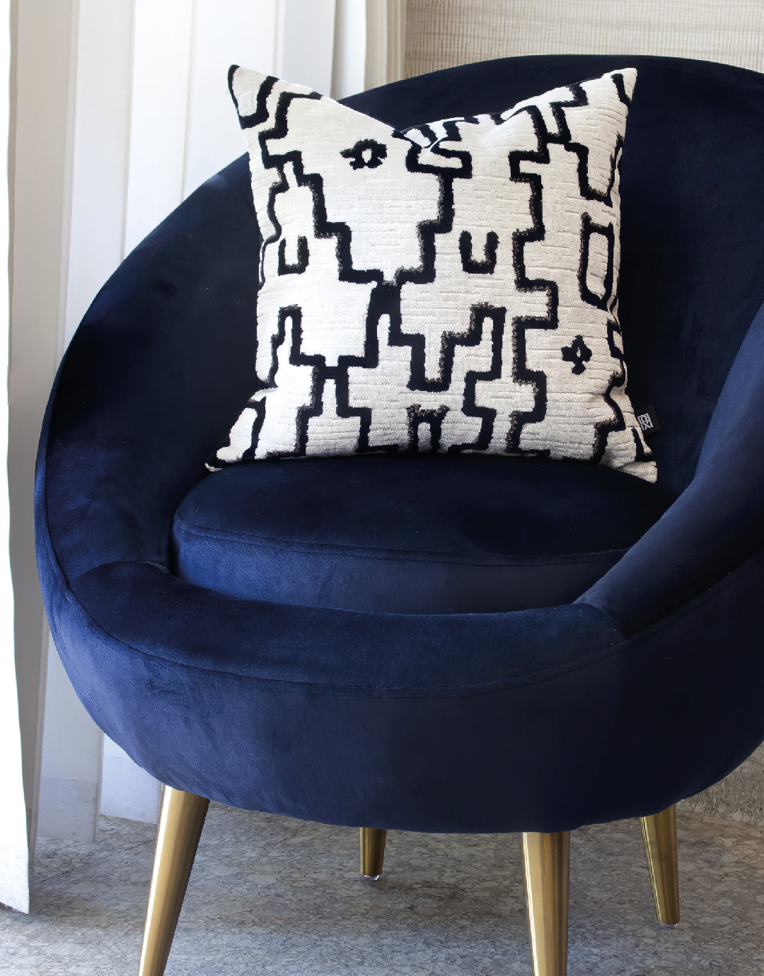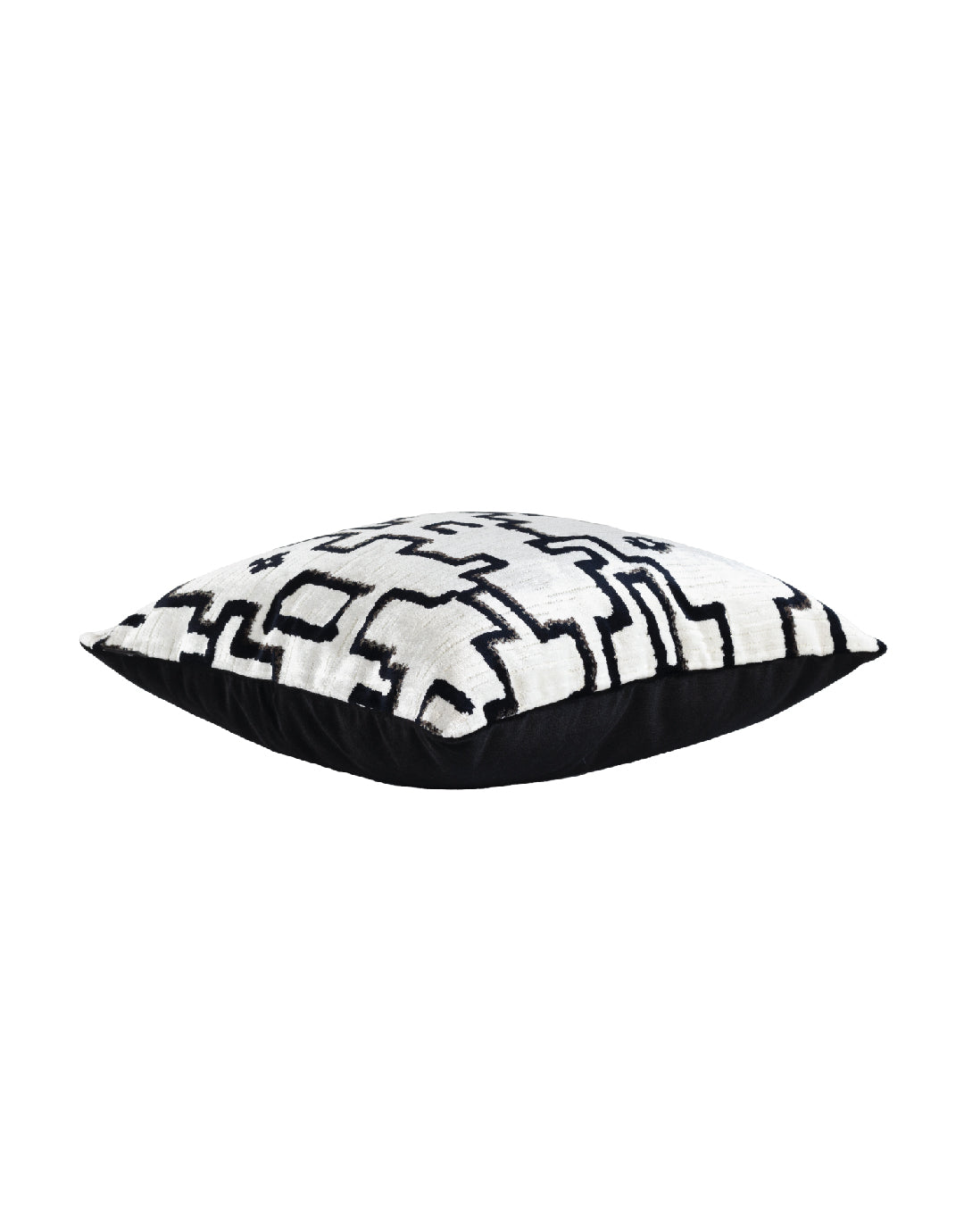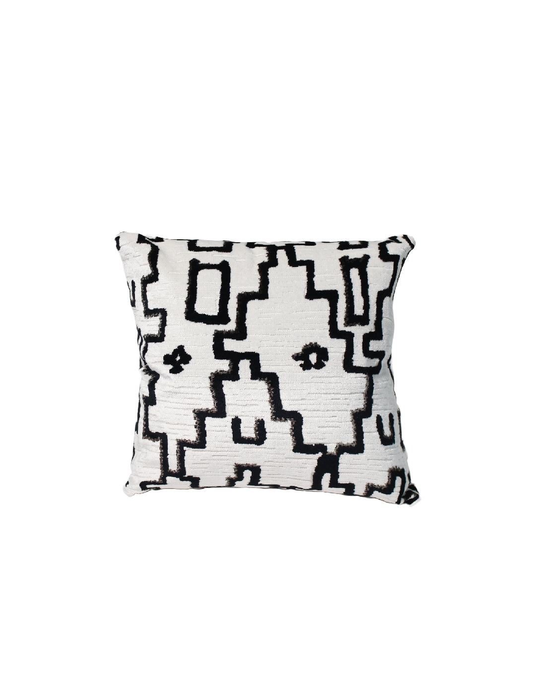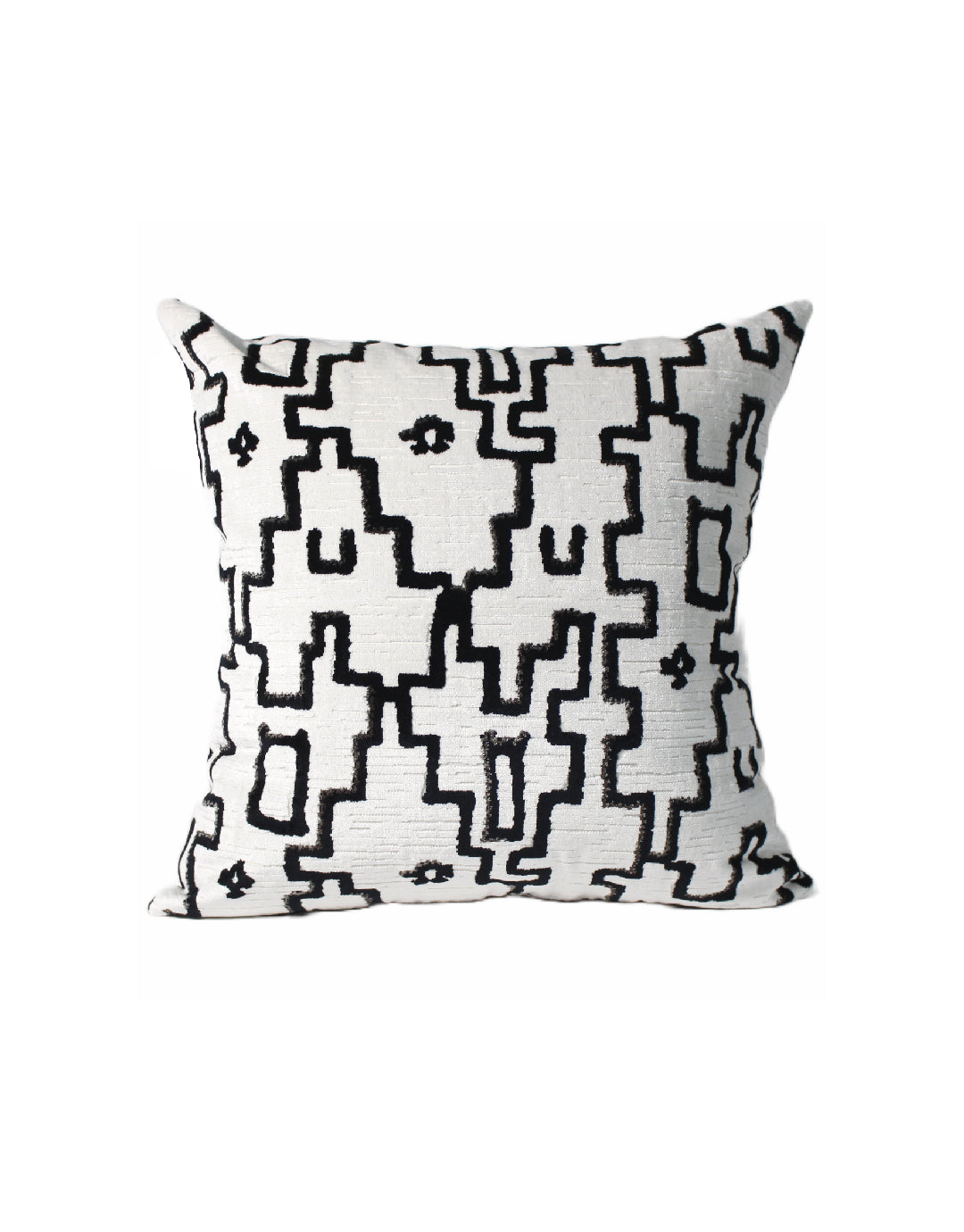 Este cojín de diseño moderno combina un fondo claro con patrones geométricos negros en relieve, brindando un estilo sofisticado y vanguardista. Su textura y diseño lo convierten en el complemento ideal para sofás, sillas o camas, añadiendo un toque de elegancia a cualquier espacio.